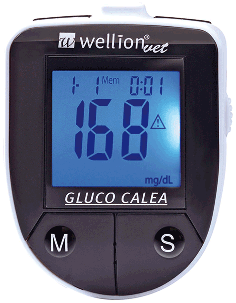 WellionVet GLUCO CALEA har utvecklats särskilt för hundar, katter och hästar. För att producera ett korrekt resultat, följer 3 olika kodchip med teststickorna och dessa kan lätt bytas ut. Dessutom finns en utmaningknapp som underlättar hanteringen av din blodsockermätare. Den enkla handhanvande av WellionVet GLUCO CALEA underlättar livet med ett husdjur som har diabetes. En ytterligare fördel erbjuds genom perfekt avläsbara siffror på den bakgrundsbelysta displayen.